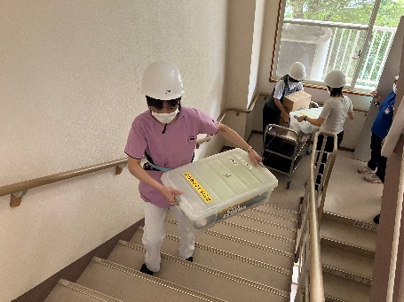 いつもエレベーターで配膳を行っていますが、エレベーターが止まってしまったことを想定し、職員が階段を利用して配膳を行っています🚶
