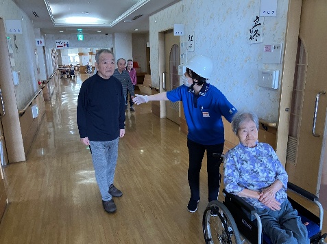 利用者様を安全な場所へ誘導を行い、安否確認を行っています。