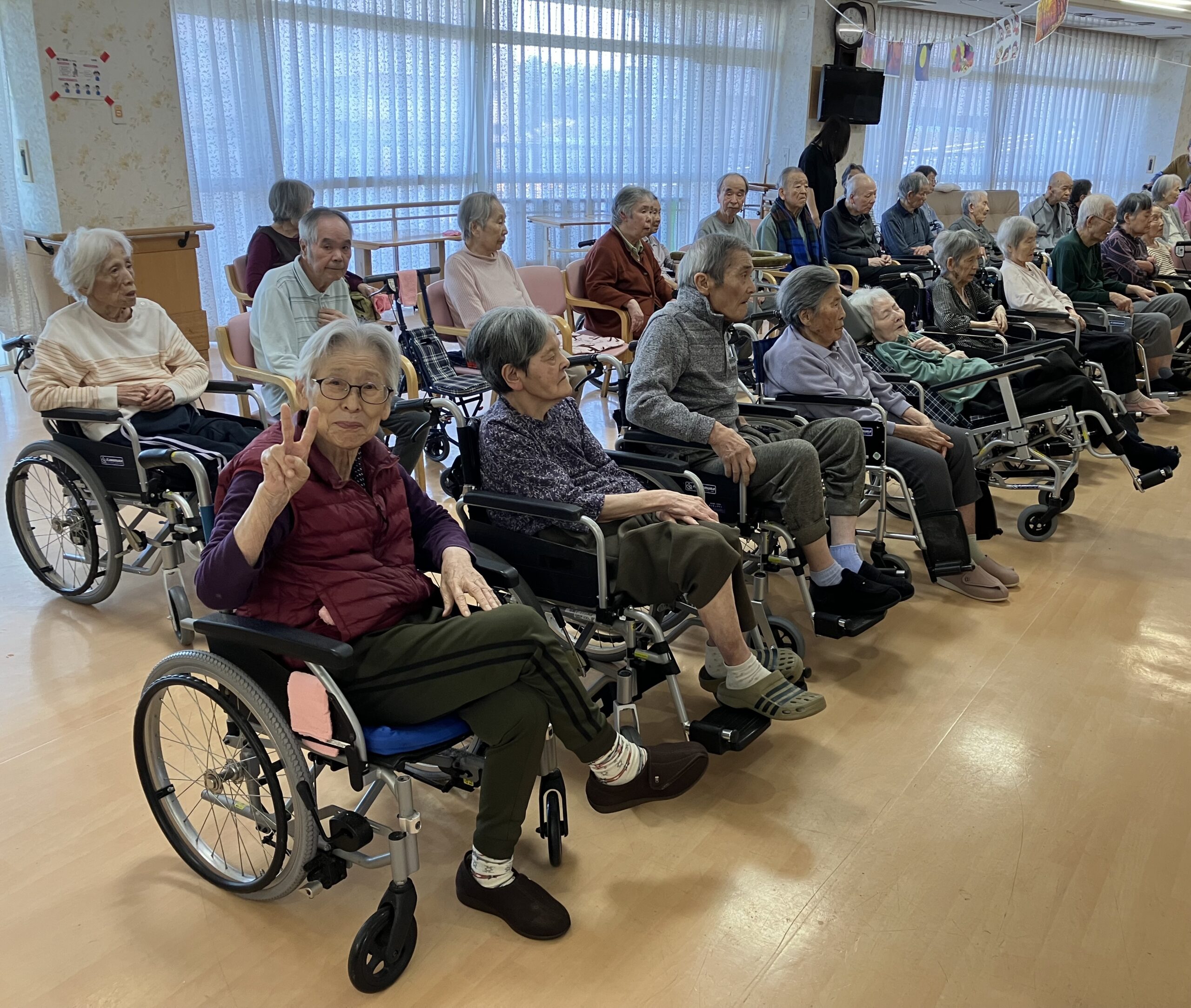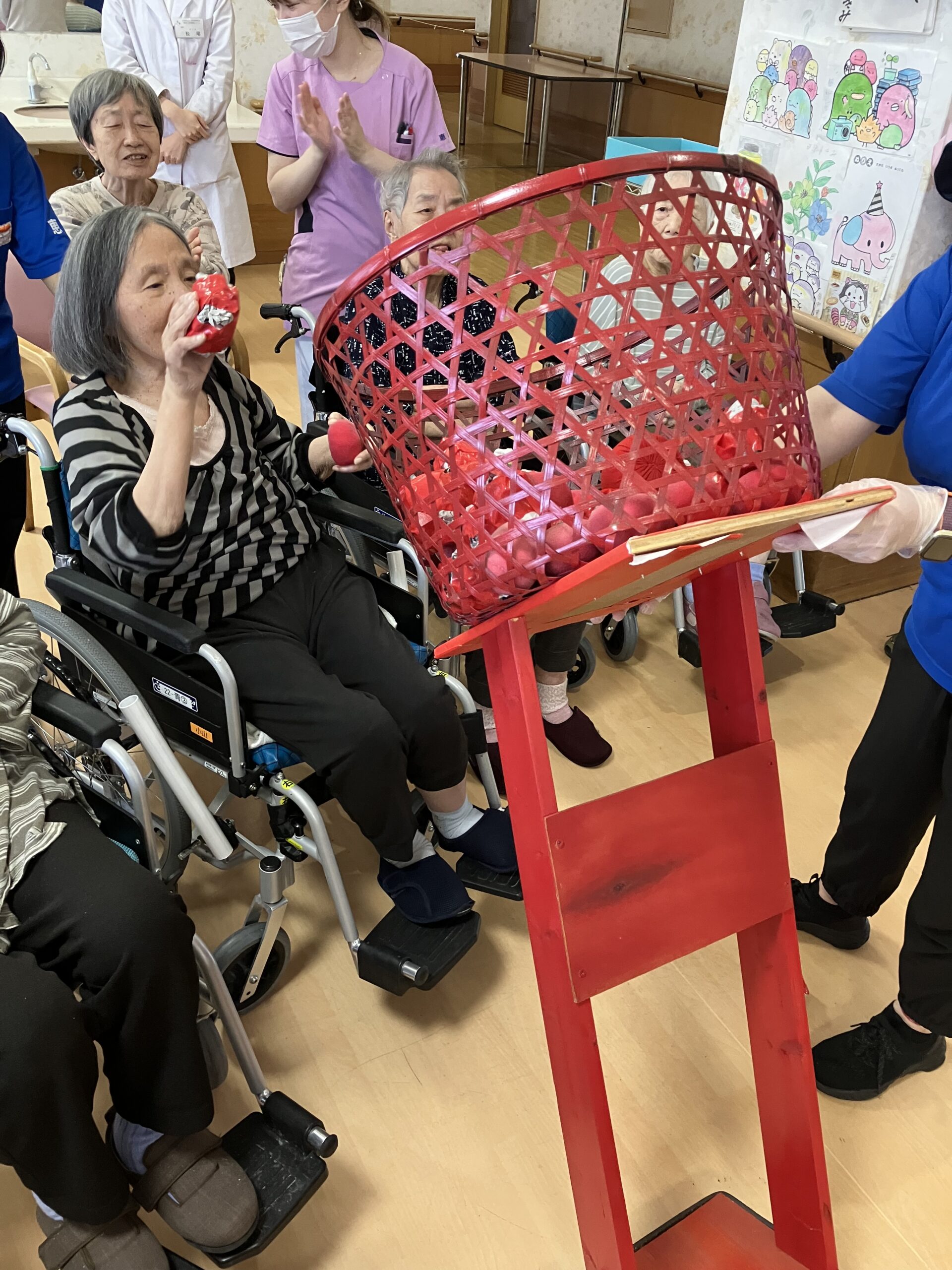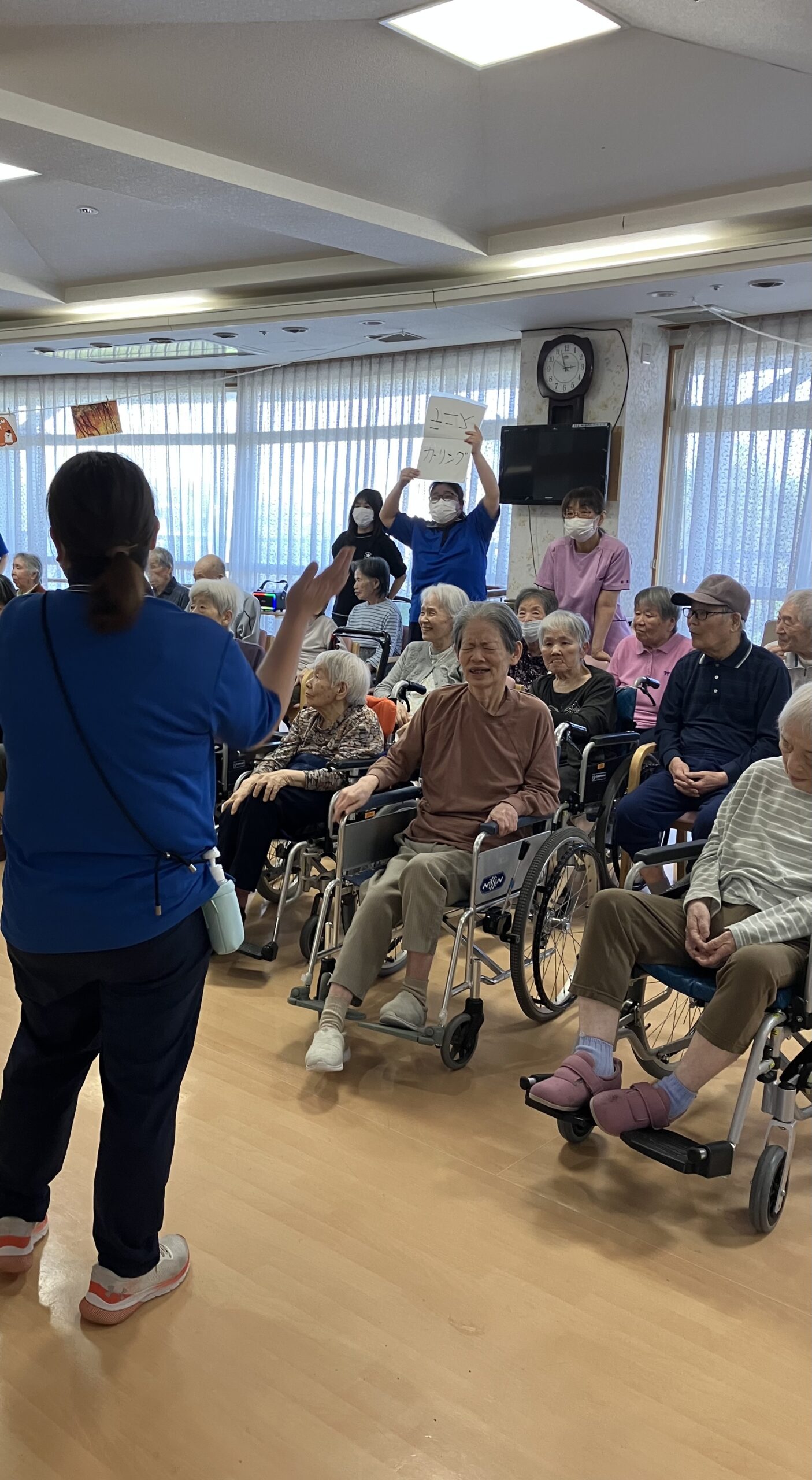 職員がお題に出た物をジェスチャーを行い、利用者様が当てるというゲームです^ ^
