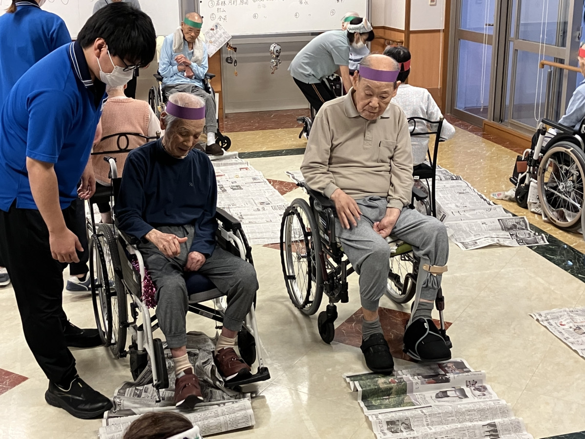 物送りゲームや運動ゲーム、新聞たぐり、玉入れなどいろいろな種目を行いました。