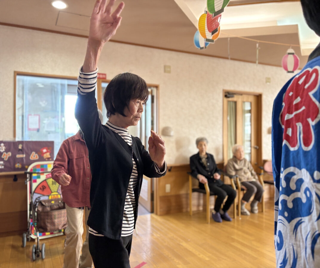 最後には、皆で炭坑節を踊りました。忘れてしまったわと言いつつも、音楽がはじまると、「思い出したわ!一緒に踊るわ」と参加され、会場が1つとなりました。手拍子をしたり、一緒に歌ったりと楽しいひとときでした。