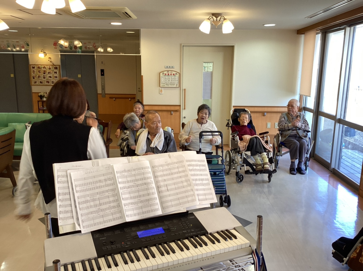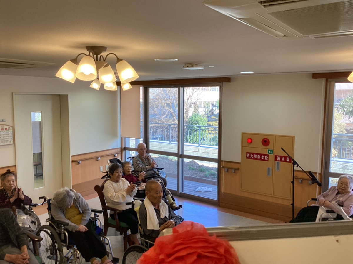 ゲスト出演者のご入居者の歌声とともに、ご参加された皆様と一緒に笑いあり思い出に浸れる様な懐かしい曲を皆様と一緒に楽しまれました。