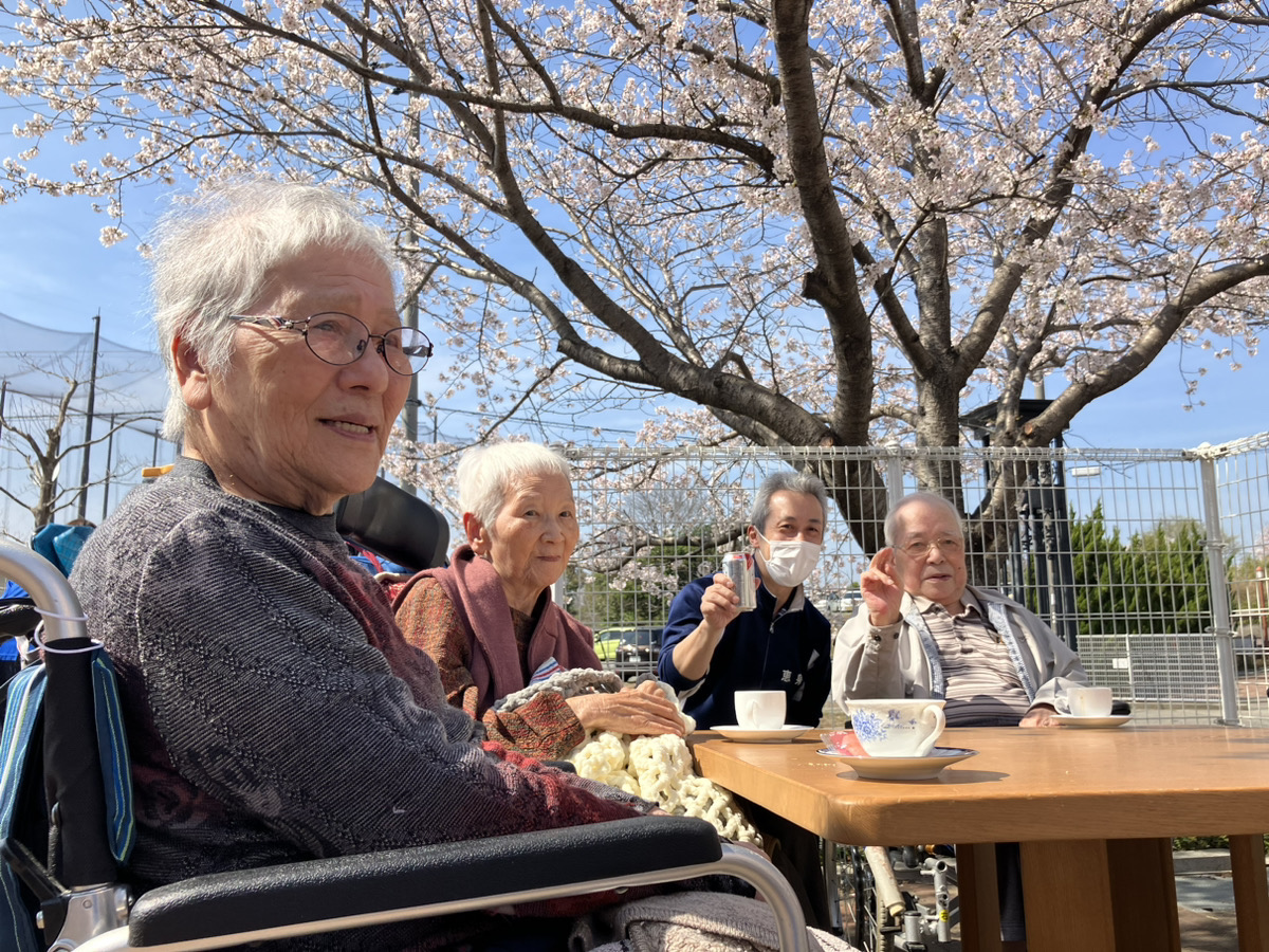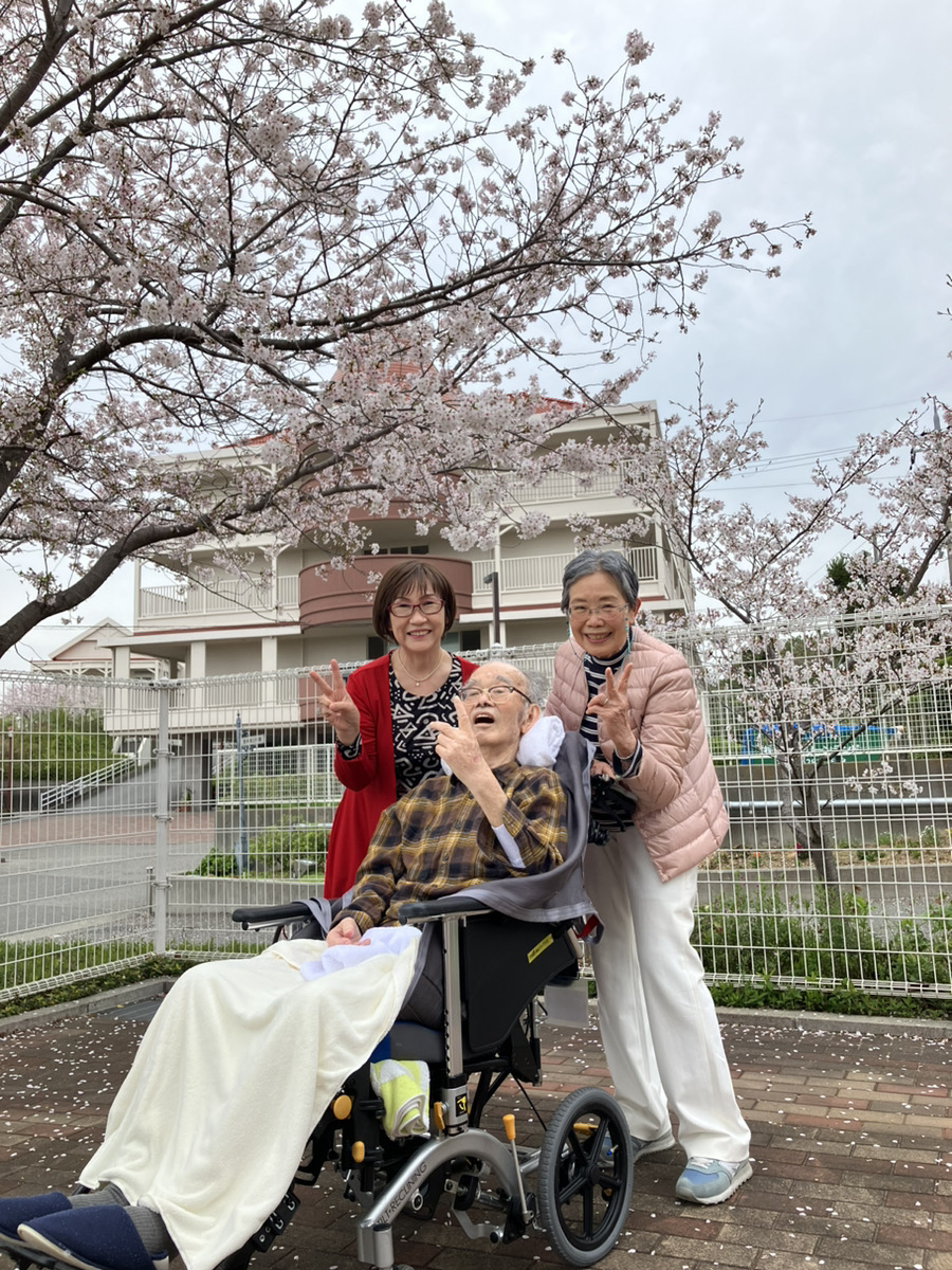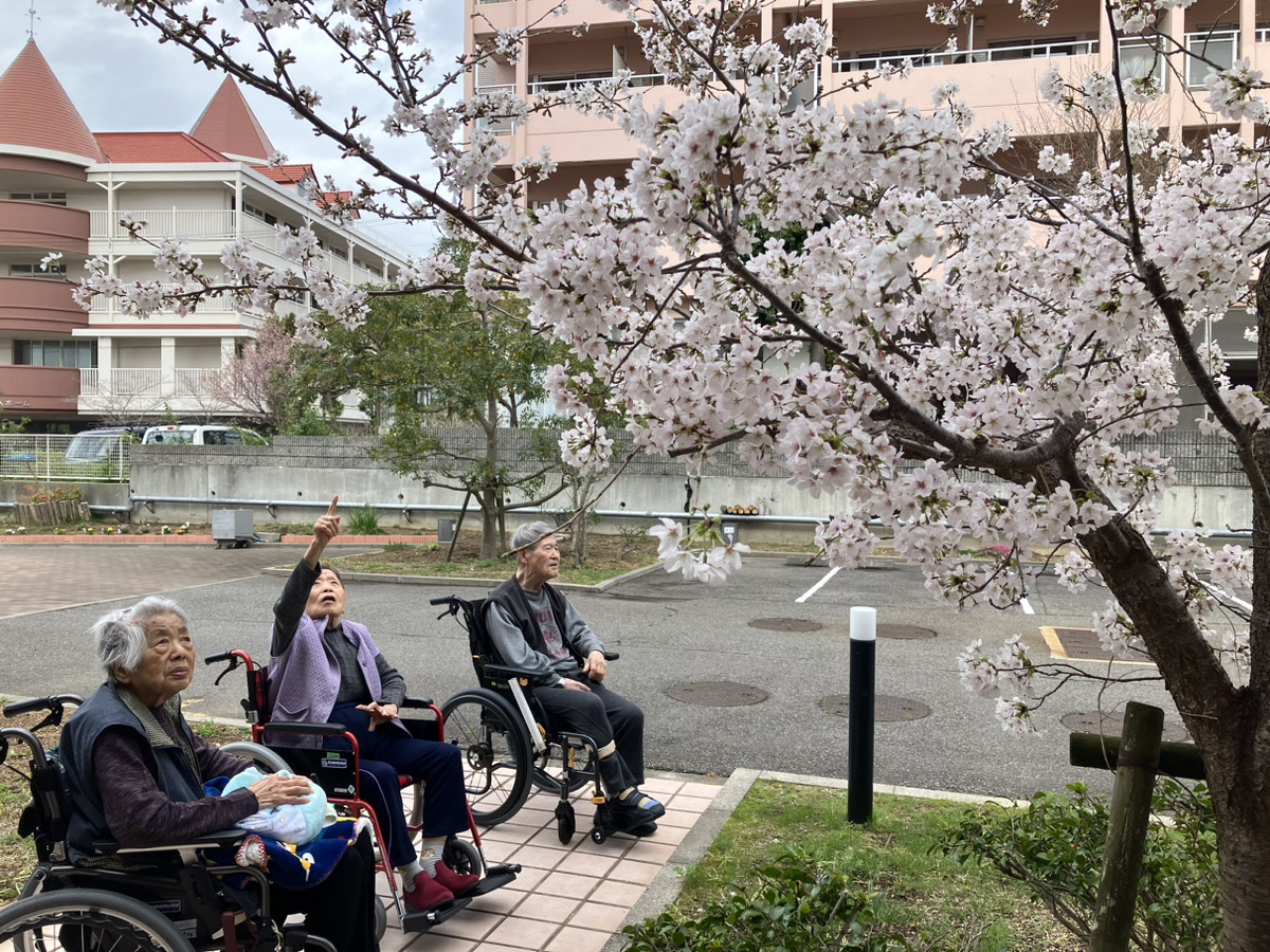 そんな悲しみはどこへやら、晴れた日にはみんなで外で体操したり、ゆっくり桜を眺めたりと思い思いに桜を楽しまれ春の訪れを感じておられました。